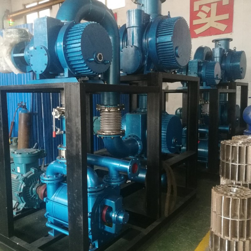 罗茨水环真空机组选用水环泵作为前级泵比其它真空泵更为有利,它克服了单台水环泵使用时压力差(机组的压力比水环泵有很大的提高),在压力下抽气速率低的缺点,同时保留了罗茨泵能迅速工作,有较大抽气速率的优点。尤其能够适应抽除大量的可凝性蒸汽,特别是当气镇油封机械真空泵排除可凝性蒸汽能力不够,或使用的溶剂能使泵油恶化而影响性能,或者是真空系统不允许油污染的时候更为明显。当配有防爆电机及电器时并遵守相应的规则下,还可抽除易燃易爆的气体。因此罗茨泵-水环泵机组广泛地用于化工行业中的真空蒸馏、真空蒸发、脱水结晶;食品行业中的冷冻干燥;医药工业的真空干燥;轻纺工业的涤纶切片。
